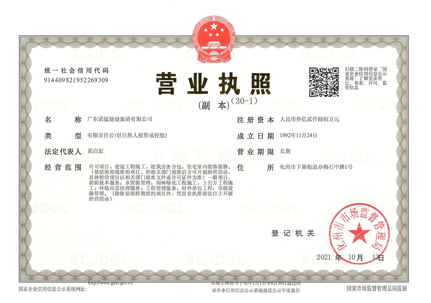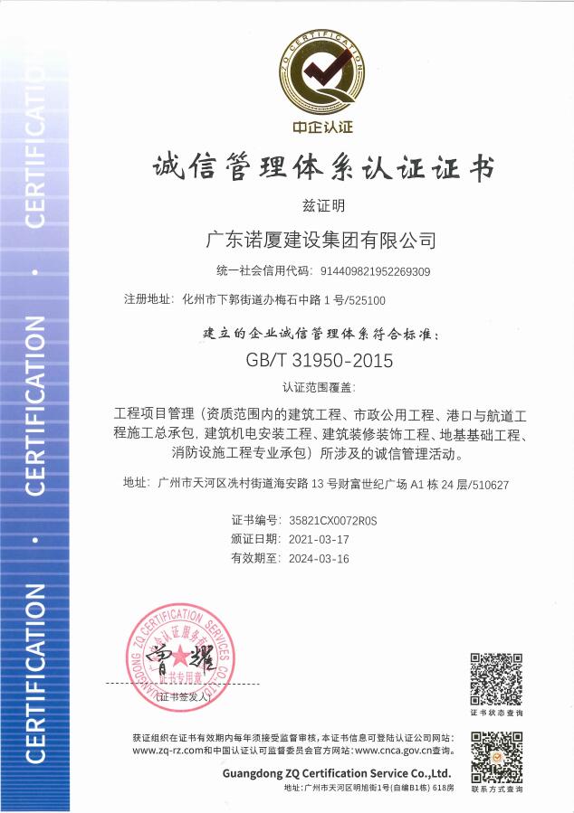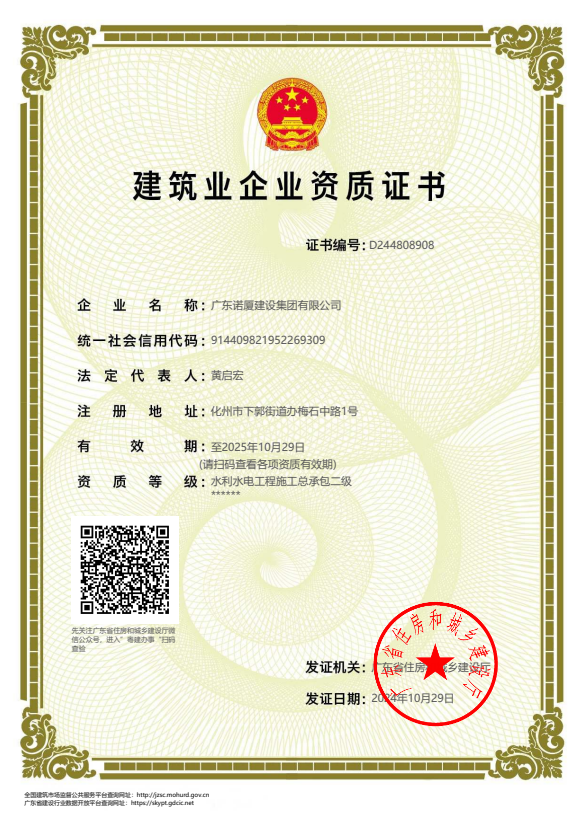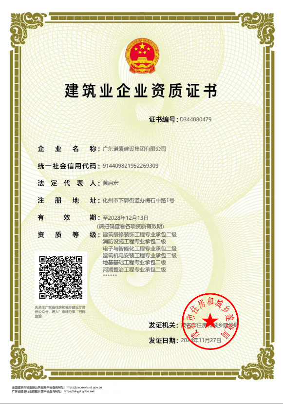 廣東諾廈建設(shè)集團(tuán)有限公司是諾廈集團(tuán)的核心企業(yè),具備國(guó)家房屋建筑工程施工總承包壹級(jí)、市政工程施工總承包壹級(jí)、港口與航道工程總承包、建筑裝修裝飾工程、消防設(shè)施工程、地基基礎(chǔ)工程、機(jī)電設(shè)備安裝工程、體育場(chǎng)地設(shè)施工程、建筑智能化工程、河湖整治工程、水利水電工程等資質(zhì)。......